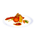 老一派的餐點盤飾,偏好採用塑膠蘭花、假花,盤飾僅作裝飾而已,沒有其他功能。「放上盤子的,應該都要是能吃的。」吳健豪大膽引進新思維,在講求視覺美感同時,盤飾不再使用假花,改將備料耗材再加工,讓新鮮蔬菜的每一個部位,都能被盛盤、珍惜的吃下,同時針對每道料理,選以最能襯出其色其型的器皿。