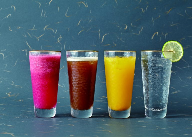 如今入座阿霞,上桌的飲料改以玻璃鑲金邊的高筒杯盛裝,店內自製的特色調飲十分用心,不僅味道好、質感更細緻。