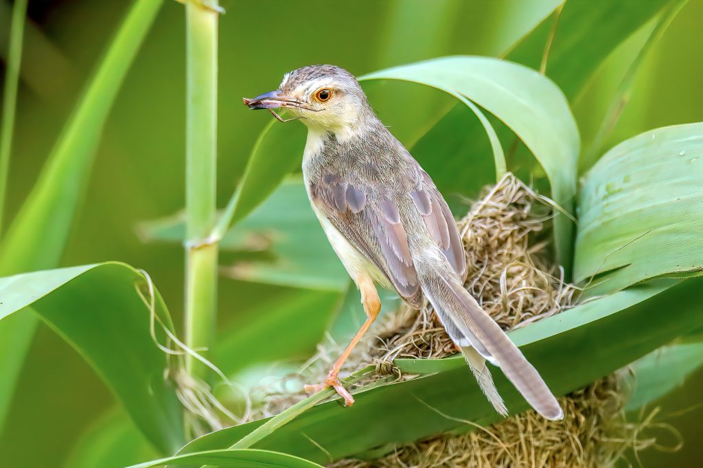 Weaving, Nesting, and Guarding Under the Sun: The Plain Prinia, a Farming Neighbor in a Bag-like Nest
